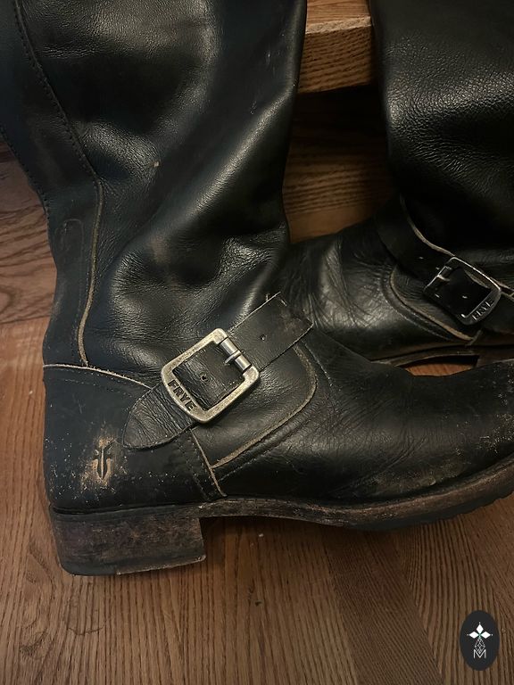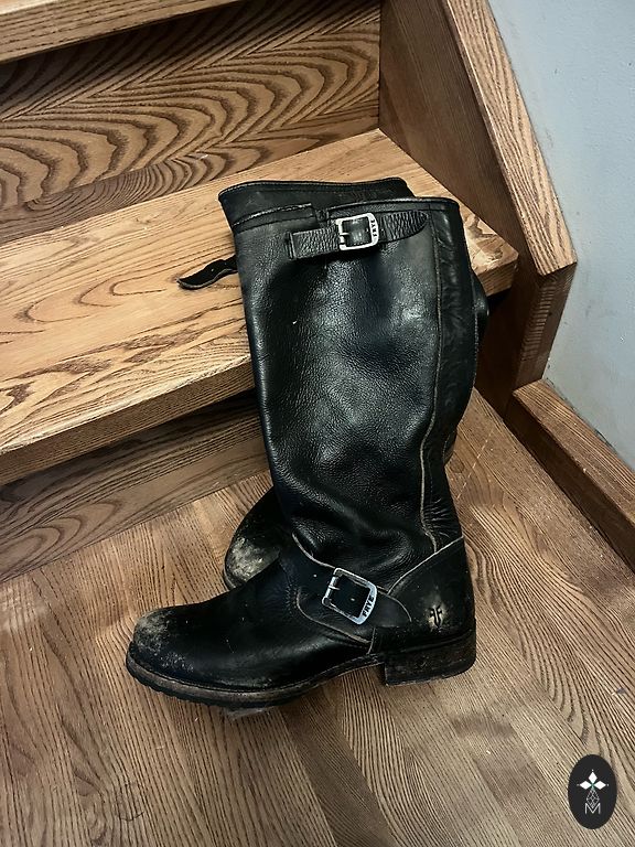 No significant defects except for the sole and heel, which can be seen in the photo. Leather boots that look very beautiful visually. Heel height 10 cm. Boot length 54 cm.