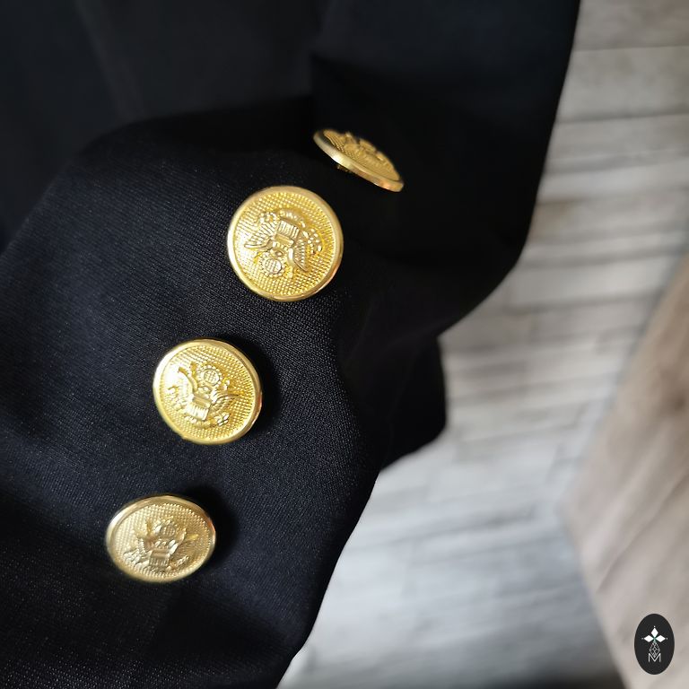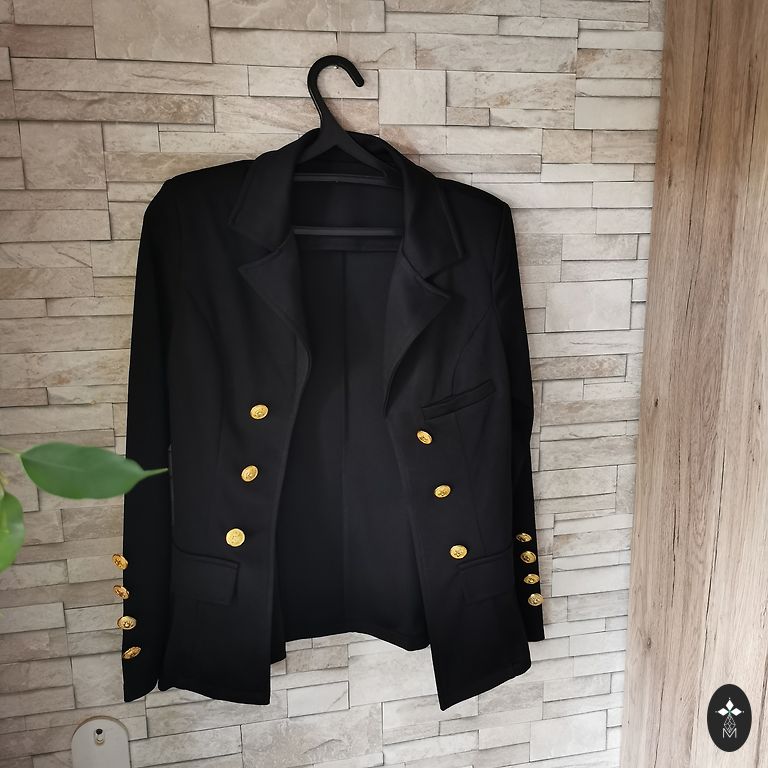 Mööda äärt, mansettidel ja taskutel nahkkattega. Rinnaümbermõõt 43×2 cm. Eesmine pikkus 60 cm. Tagumine pikkus 54 cm.