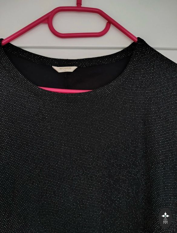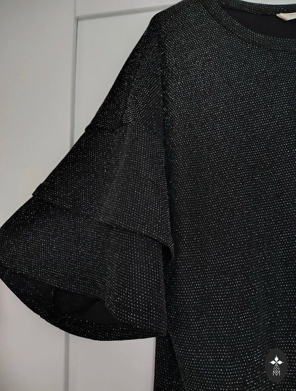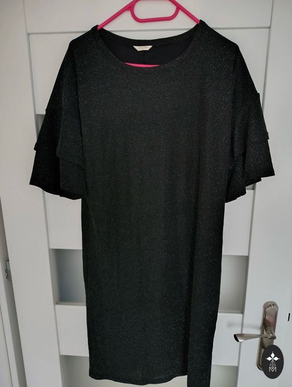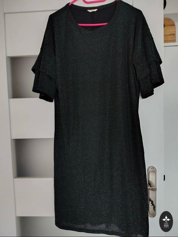 Juodos zomšos tipo medžiagos mini suknelė, XS dydis, sidabrinės sagtys. Dėvėta 1 kartą ir dabar laukia savo naujų namų spintoje. Ilgis 81cm. Rankovės sutrumpintos. Pristatymas į kainą neįtrauktas.