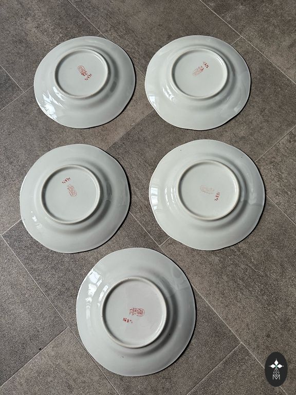 Kaina už 1 vienetą - 2.70 eur. 8 vnt - 17 cm (nuotrauka) puikios būklės + 3 su nedideliais naudojimo žymiais, be įtrūkimų ir smūgių, bet su minimaliu aukso praradimu. RPR INDŲ DAUGIAU NEBUS, praeitis NEPASIKARTOS! Kaina 27.00 už siūlomą komplektą - visus 11 vnt kartu.