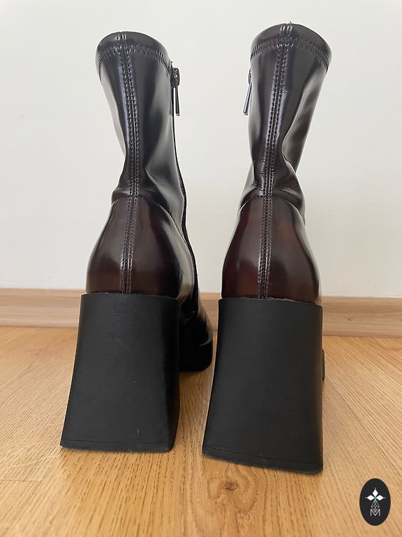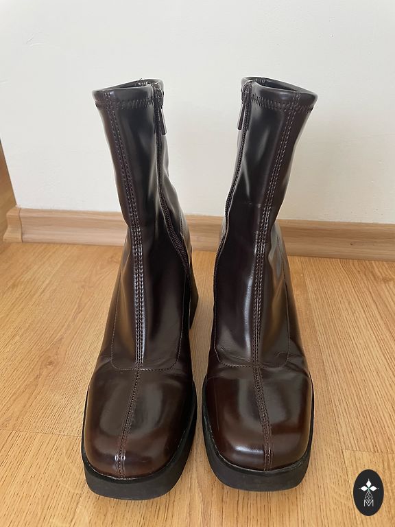 Pirku Eiropas apavos. Uzvilku pagājušajā ziemā pāris reizes. Stabils 37.izmērs. Vizuālie defektus nemanu, tikai no striķiem nedaudz panākuši diedziņi laukā (bildi nosūtīt varu privāti, jo šeit nebija iespējams pielikt vairāk bilžu). Kopumā jau feini zābaciņi :)