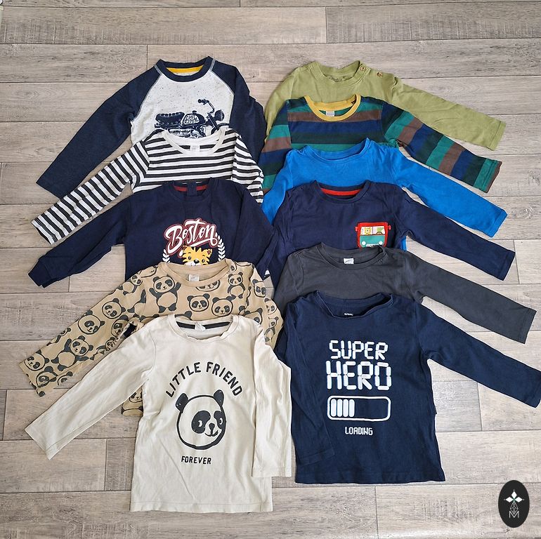 Išvaizda primena džinsinį audinį, tačiau ilgos rankovės - medvilnė, trumpus rankovės - tencelis (labai malonus ir patogus odai).