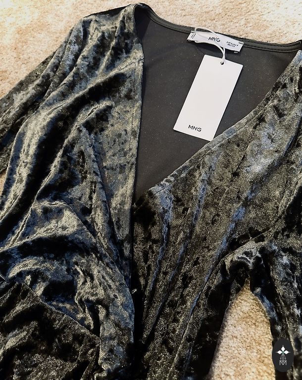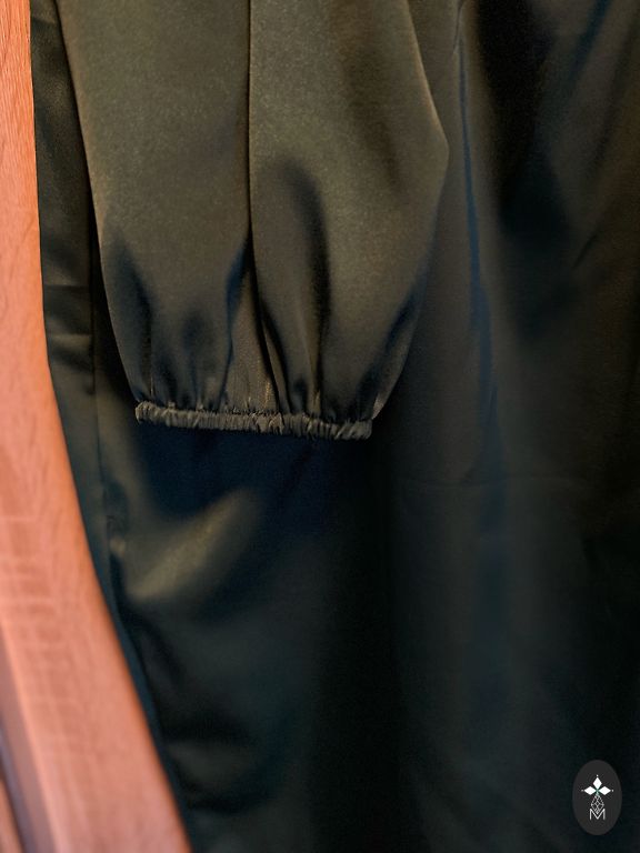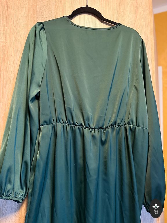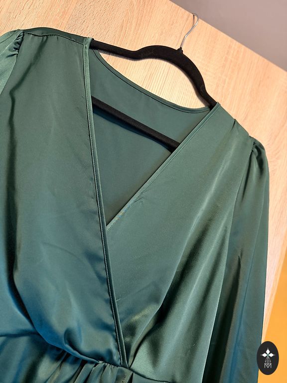 Uus, kandmata. Suurus XL, keskmise pikkusega, lõhikuga, küljel kokku tõmmatud, õlapadjad. Värv on tõeline tumesmaragdroheline, ilma sinise toonita.