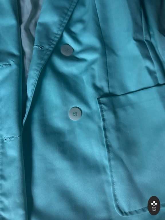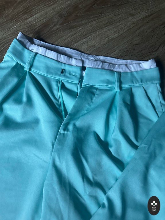 38 dydis. Kelnių ilgis 101 cm. Kardiganas gale permatomas.