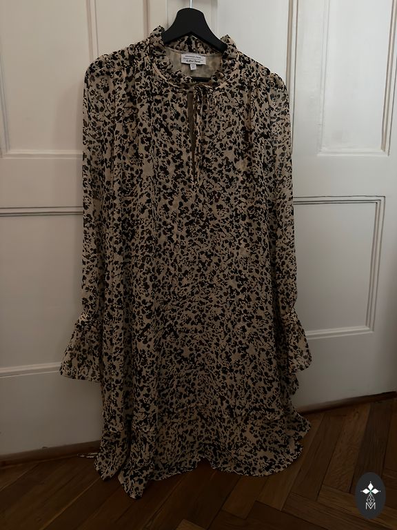 Ļoti skaista, melna kleita ar fliteriem. Fliteri nav ļoti spīdīgi, bet vairāk eleganti. Kleita bija šūta pēc pasūtījuma, pirku tepat Andelē, bet kaut kā sanāca uzvilkt tikai 1 reizi un stāv jau ilgi skapī. Audums gan nav sevišķi staipīgs, tādēļ jānotrāpa ar izmēru- man ir 38/40 un tad der perfekti. Garums 93 cm, rokas 43 cm