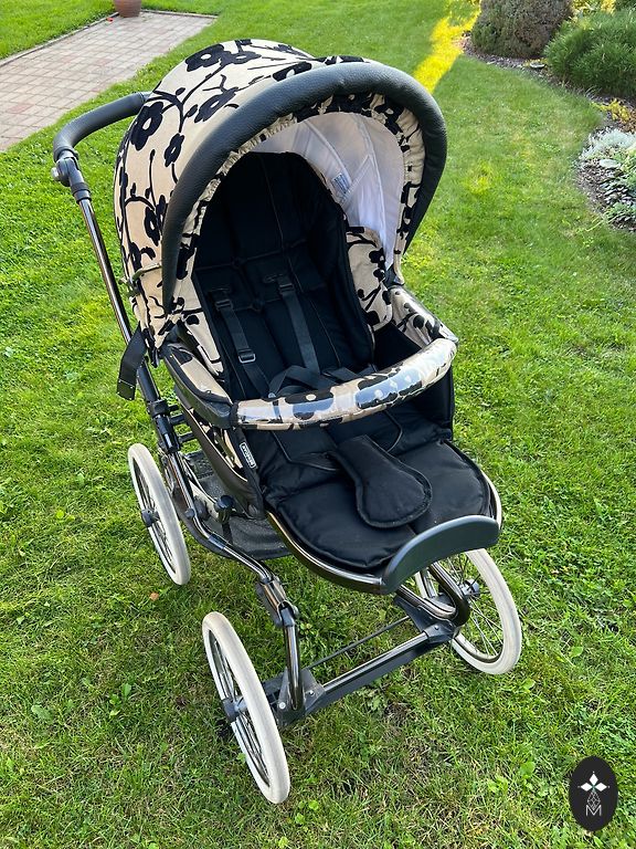 Labai gražus klasikinis vežimėlis „Bebecar Stylo Class“ su visais diržais, kurį galima pritvirtinti prie automobilio, sportine dalimi su šiltu maišeliu žiemai, automobiline kėdute su 2 šiltais kojų apdangalais, maišeliu, saulės skydeliu, lietaus dangčiu. Didžiausias galimas komplektas. Viskas buvo nupirkta kartu, viena kolekcija. Viskas yra geros ir labai geros būklės. Labai malonu važiuoti. Priekiniai ratai sukasi, gali būti fiksuojami tiesiai. Jūsų vaikas šiame vežimėlyje jausis labai patogiai ir jaukiai. Esu gavusi daug komplimentų.