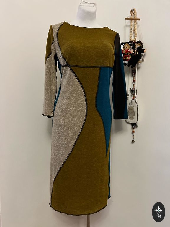 Tampri vidutinio storio trikotažinė suknelė. Labai patogi. Siūta pagal užsakymą. Dydis 44/46.
