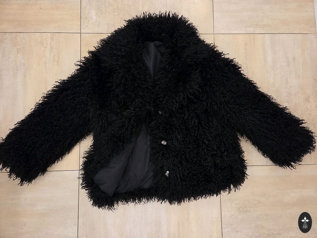 Šokolado spalvos kelnės su aukštu juosmeniu. Kelnių ilgis 100 cm, vidinis kojos ilgis 71 cm. Laisvai krintantis oversized megztinis, ilgis 61 cm, rankovių ilgis 49 cm. Viskoze. Labai šiltas.