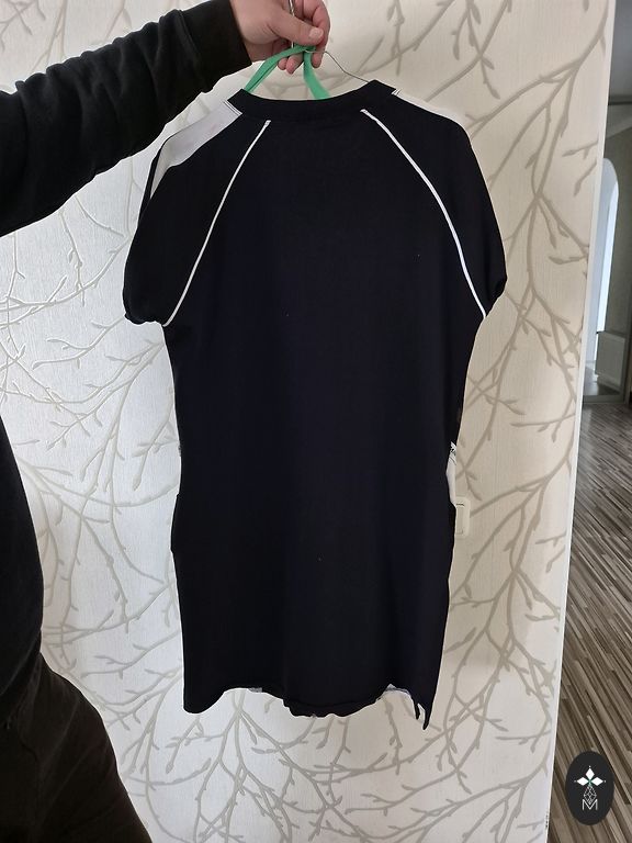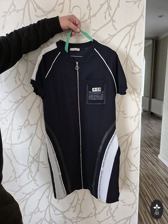 Simas L kerge suvekleit õhukese kapuutsiga, taskutega ja väikese tõmblukuga eesosas. Pikkus 100 cm, rinnaümbermõõt 104 cm, puusaümbermõõt 111 cm.