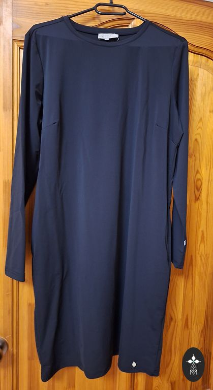 Черно-белое полосатое платье с желтыми акцентами. Платье сзади длиннее. Материал не мнется, эластичный и довольно плотный. Длина (от низа) - 104-108 см Рукав (от плеча) - 55 см Талия - 108 см