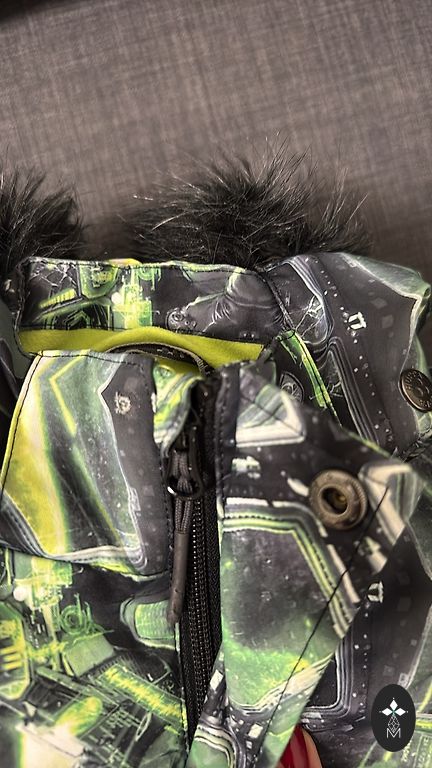 Kapuce noņemama.Caurumu nav,tikai ceļos mazliet nobrāzumi.