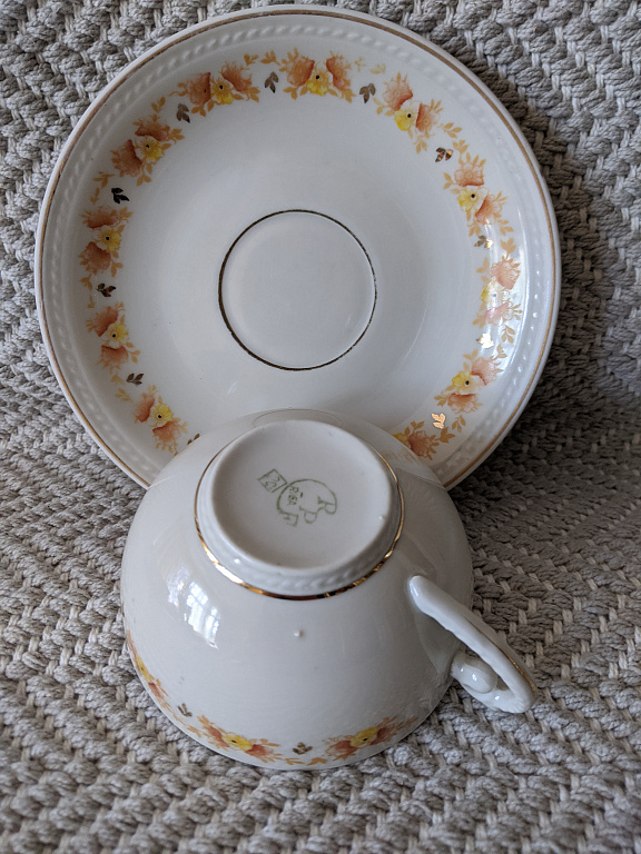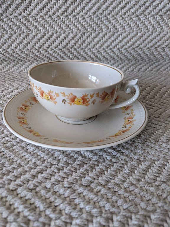 Arbatos servizai „Karina“ su arbatos rožėmis, dalys. Puodelis su lėkštute.