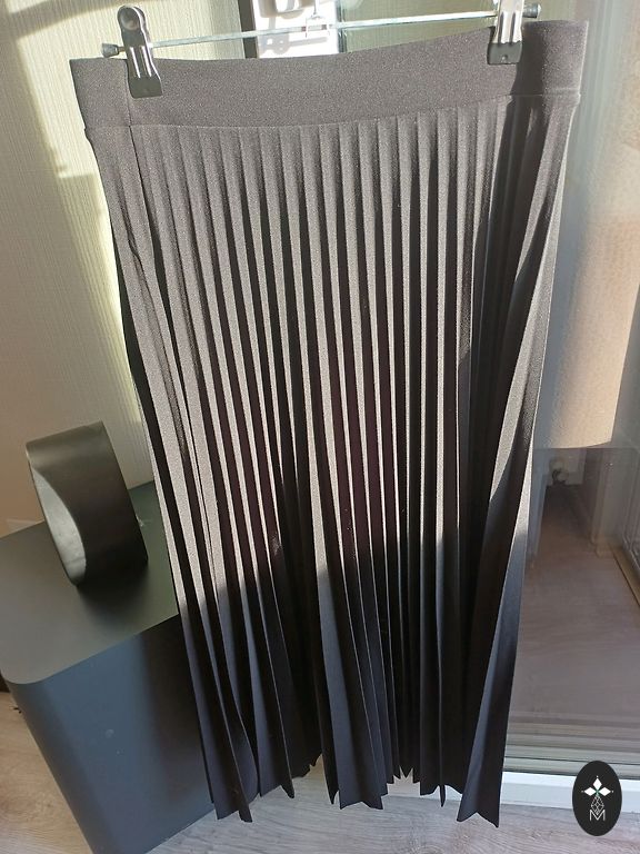 Pikk, asümmeetriline, lõhikutega, küljeõmblustesse õmmeldud taskud, uus seelik. Värv on hall, pigem nagu pildil 1... kindlasti mitte nagu teistel.