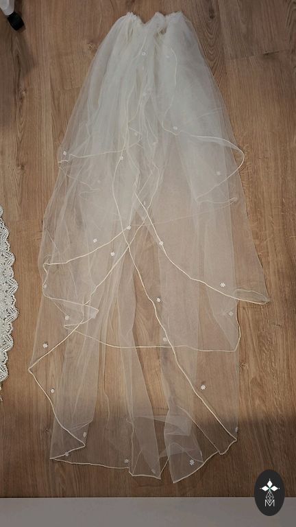 I am giving away a veil and bottom "ribs". A matching hair accessory is also available.