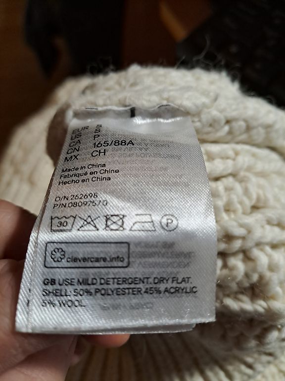 Materiāls 97 % akrils, 2% poliesters, 1% metāliskie diegi.