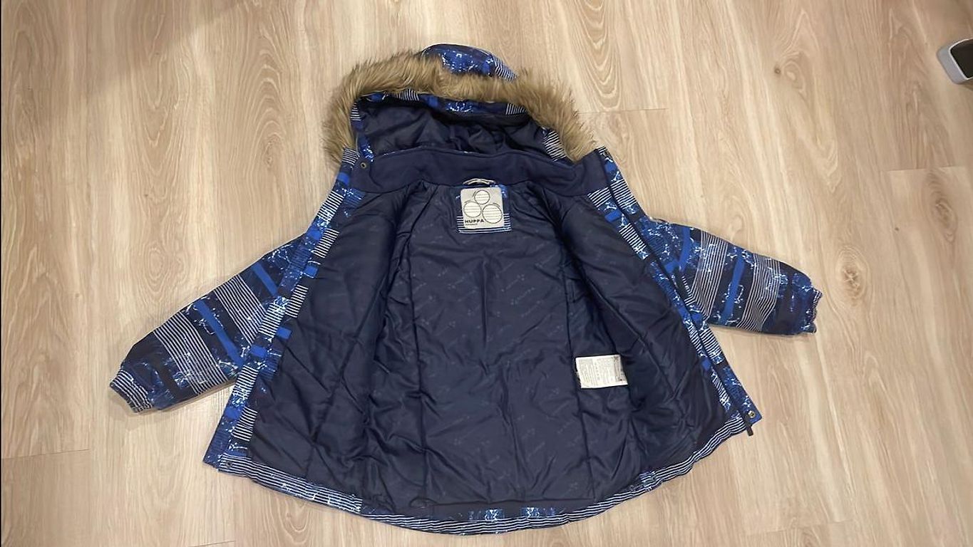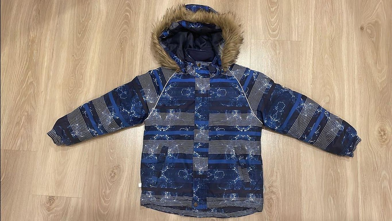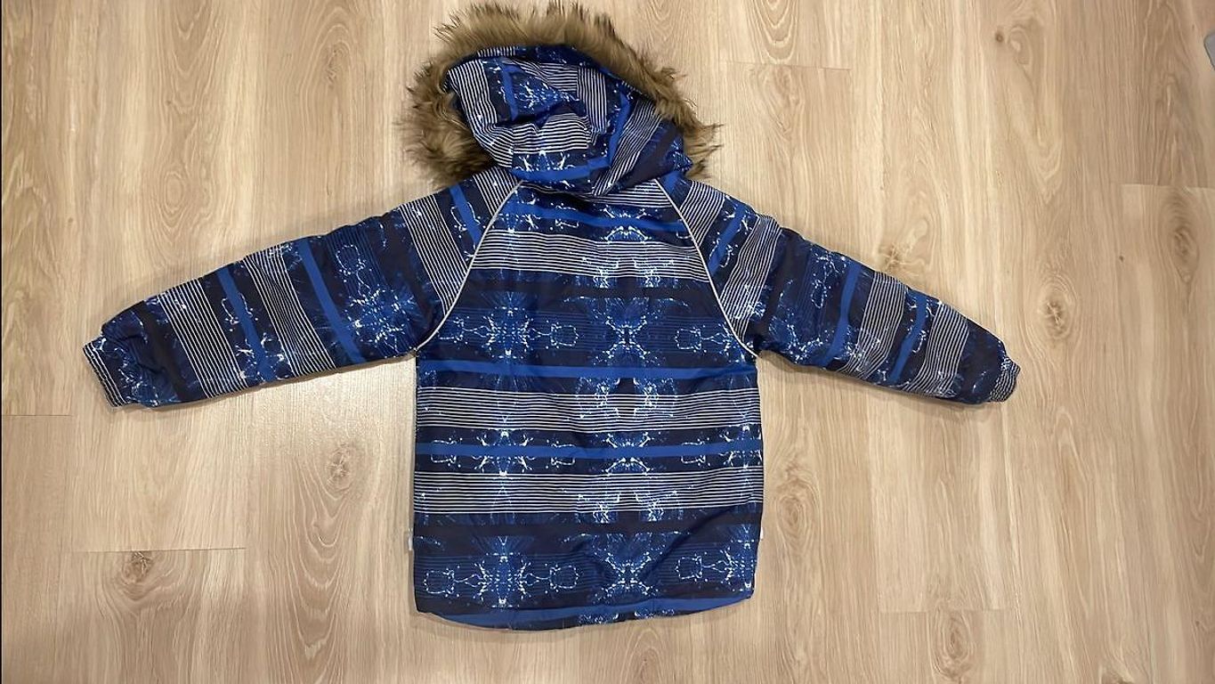 Ir vienas piedurknes gals drusku padilis un vienai piedurknei plīsums sašūts.Bildēs var redzēt.