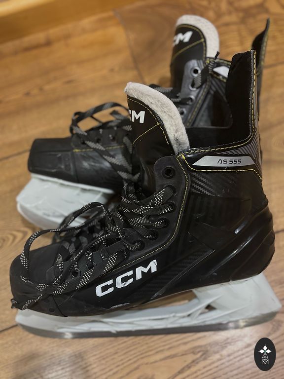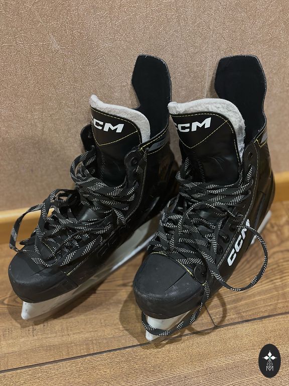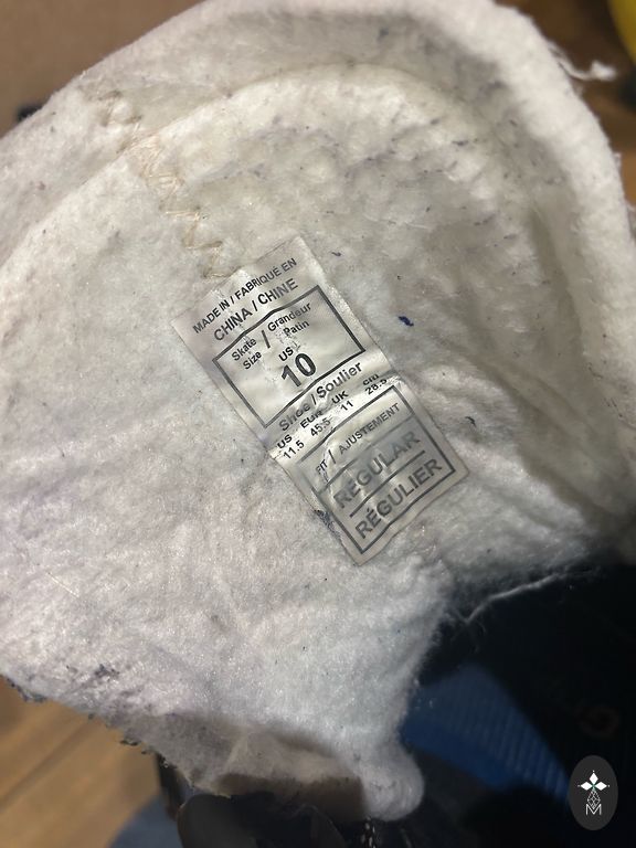 42.izmērs. Ārpusē ir lietojuma pazīmes - skrāpējumi plastmasas daļai. Lietošanai netraucē. Iekšējā mīkstā daļa ir izņemama. Pēdas garums apmēram 27 cm.