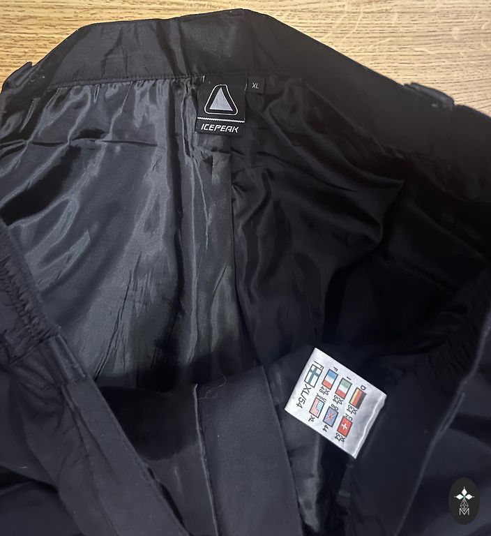 Be defektų. Be izoliacijos. Ilgis išilgai šoninės siūlės 110 cm, vidinis kojos ilgis 83 cm, juosmuo be ištempimo 46 x 2 cm, ištempiamas iki ~61 x 2 cm, taip pat galima dar labiau sutvirtinti.