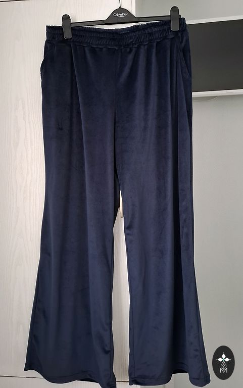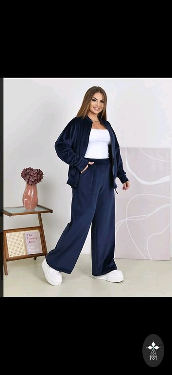 Легкий и дышащий костюм для жаркой погоды. Ткань не эластичная, топ в груди и брюки в бедрах 135 см, топ из ткани Cotton+Viscoze, брюки из полиэстера, но на ощупь как вискоза. Длина брюк 105 см, топа 76 см.