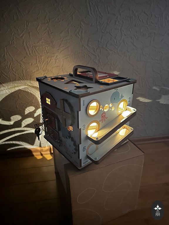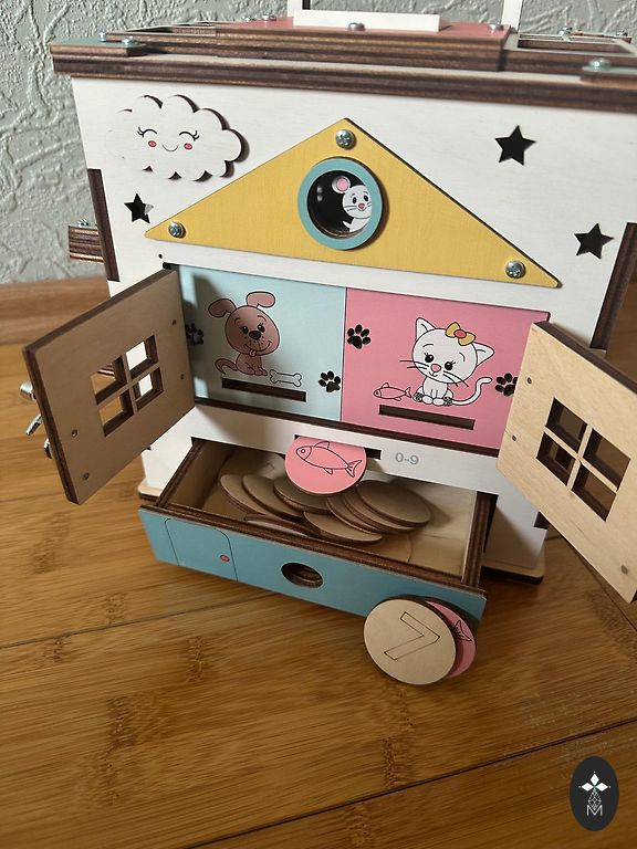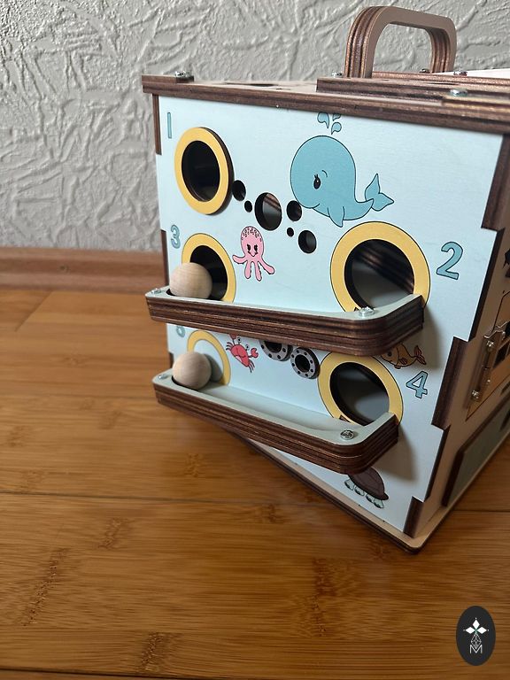 Šis veiklos kubas turi įvairių veiklų, kurios padeda lavinti vaikų smulkiąją motoriką, logikos mąstymo įgūdžius, skatina vaizduotę ir kūrybiškumą.