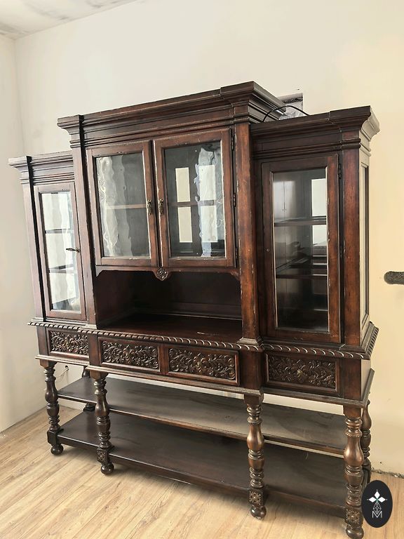 Bufetas. Plotis 143 cm, aukštis 210 cm, gylis 44 cm.