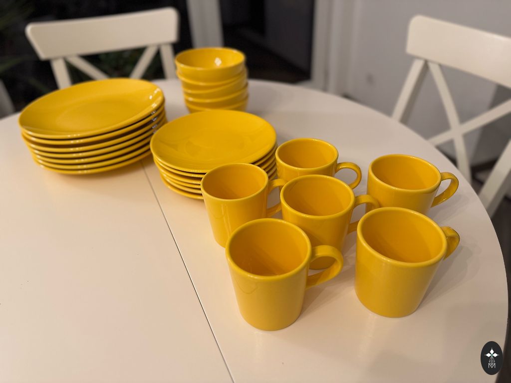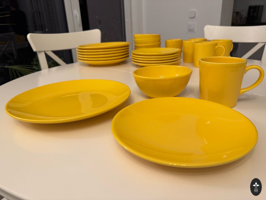 60-ųjų metų glazūruoti ryškiai raudoni moliniai porcijų lėkštės. 22 cm skersmens. Vienos lėkštės krašte apie 2 cm nulūžusi viršutinė dalis. Jei domina, yra dar 3 vnt.