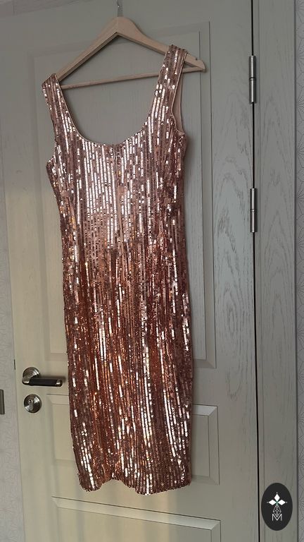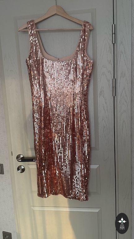 Просто элегантное и стильное платье для мероприятия! Акцент - рукава, которые сзади удлинены и с разрезом, придающим элегантность общему виду. Цвет нежный - между бежевым и нежно-розовым. Длина платья от плеча 89 см.