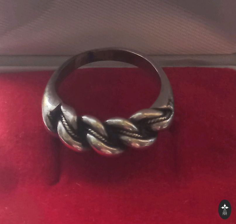 Sidabro spalvos metalinis žiedas su moterimi, vidinis apimtis 7,5 cm, reguliuojamas. Siuntimo išlaidos papildomai.