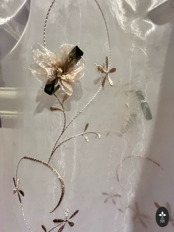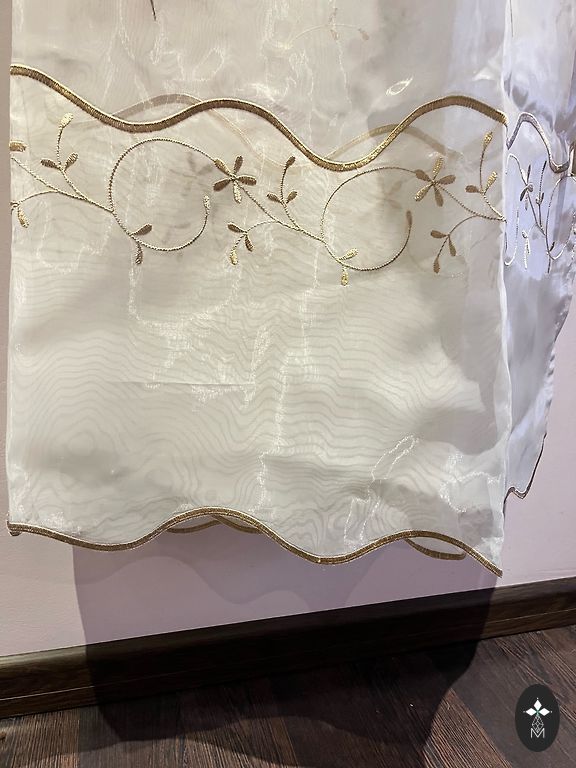 Parduodu romėniškas dvigubo audinio žaliuzes. Apatinis audinys yra baltas, o kitas – permatomas su raštu. Dvi žaliuzės yra 190 cm pločio, o trys – 100 cm pločio, jų ilgis – 190 cm. Parduodu visas kartu. Viską galima nuimti ir išskalbti skalbimo mašinoje.
