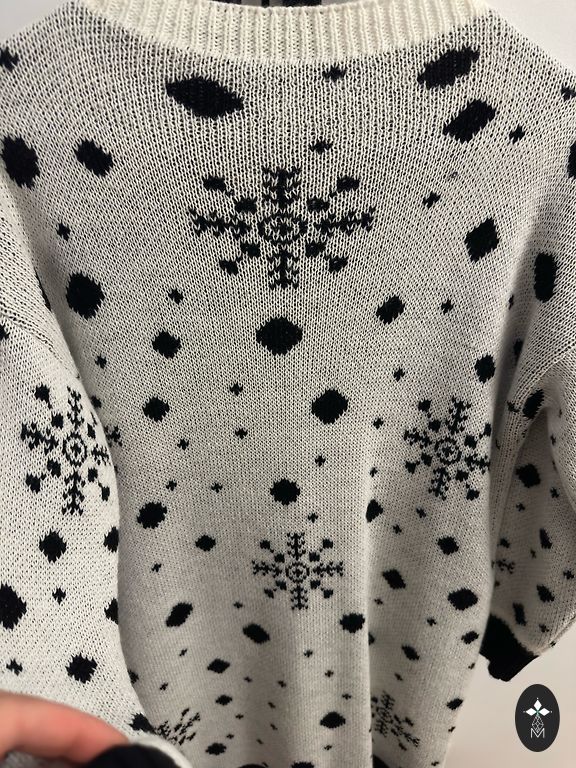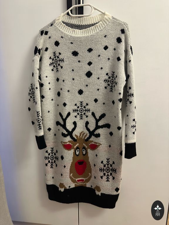 Довольно плотная, эластичная. Почти как платье-свитер, но тоньше. В груди 50 см, книзу немного шире. Длина 90 см.