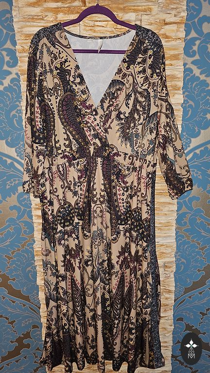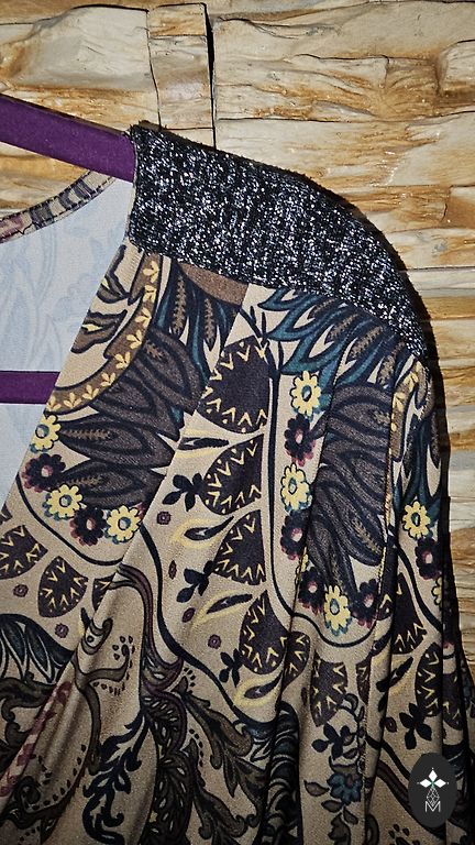 Pikkus 128 cm, varruka pikkus 60 cm. Rinnaümbermõõt 108 cm, laienev ja puusad kuni 120 cm julgelt.