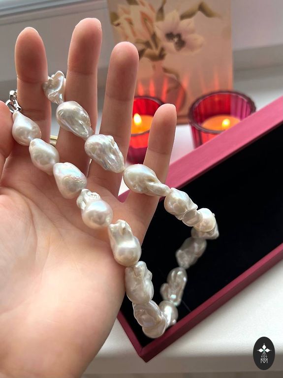 Īstas upes pērles uz sudraba. Nekādu defektu nav. Ir prove s925. Garums kaklrotai 39cm + 3cm
