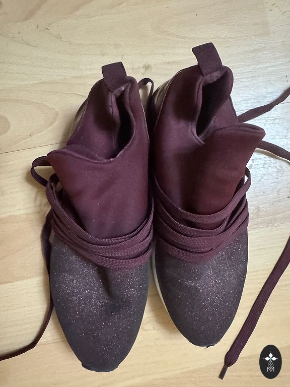Iekšpēdas garums 24 cm. Vienīgais defekts šņore sairusi, redzams baltais, apakšējais diegs.