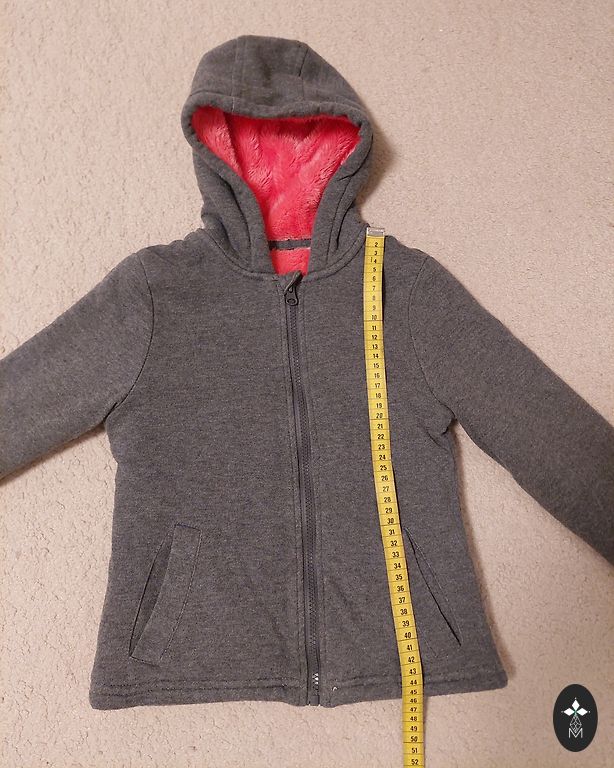 Куртка немного б/у. Из мягкого велюра типа хлопка, с гладкой хлопковой частью воротника, которая отгибается. Цвета: в основном серый + черный + розовый.