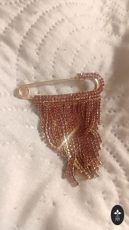 pērlīšu broša ar akmentiņiem – smalks roku darbs, kas mirdz saulē un piešķir šarmu. 👉 5€