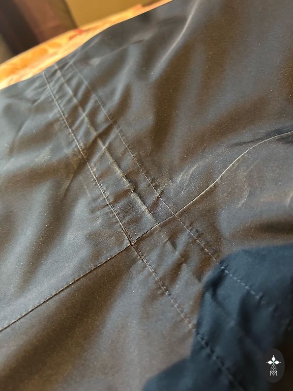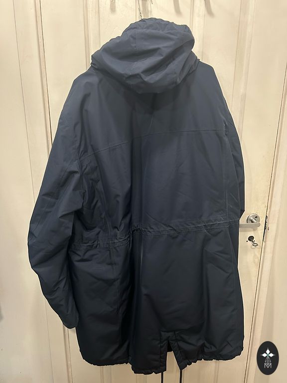 Wearing on both sides blue red. The hood is unusable, attempted to remove it looks sad, but it is folded and fastened with a snap button. Chest 64×2 Length 83 cm. Sleeve length 63 cm.