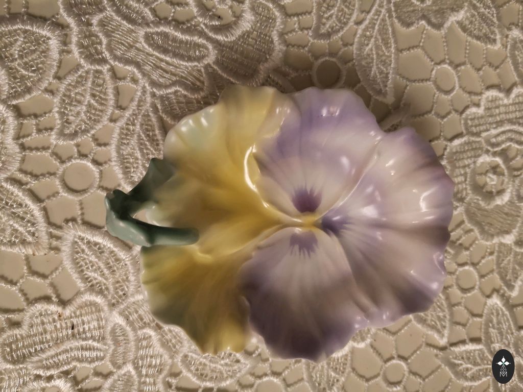 Porceliano prieskonių indelis. Viršuje mažas iškilimas, matomas nuotraukoje.