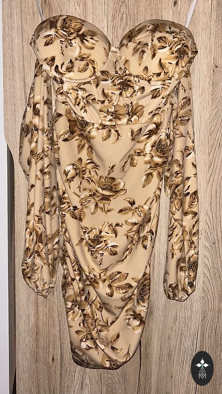 Lilleline kangast pükskostüüm, tagaküljel lukk, sisseõmmeldud rinnahoidja. Reguleeritavad õlapaelad. Puudused, üles tõmmatud niit.