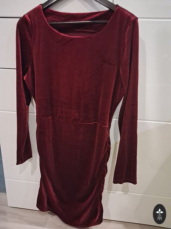 Müüa õhtukleit, mis on valmistatud mõõtude järgi ja mida on kantud ainult üks kord. Hea struktuurne kangas, burgundia värvi vooder. Sobib hästi.