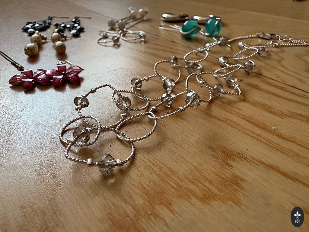 Unikaalse disainiga kõrvarõngad puidust alusega, mille pind on kaetud epoksüvaiguga. Igal kõrvarõngal on erinevad kujutised ning kuld- ja hõbedavärvi metallosad. Väikesed ja kerged.