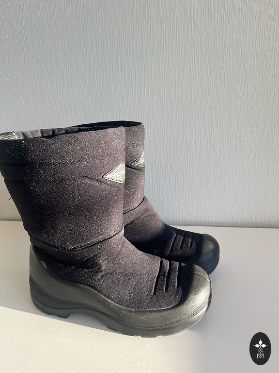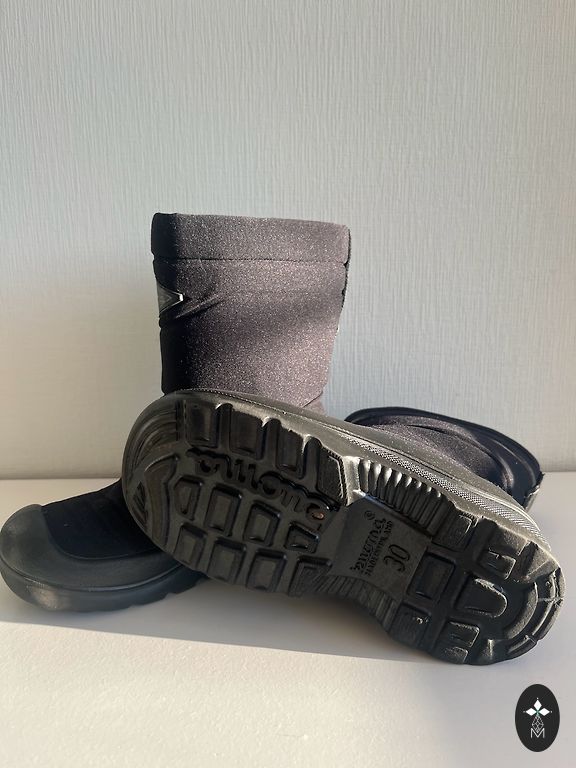 Insole 19.5 cm. Non-slip sole. Rubber on the toe and heel, wool on the rest of the shoe and inside. Two rust spots on the zipper of one shoe.