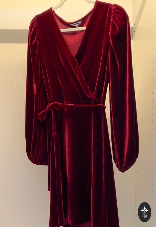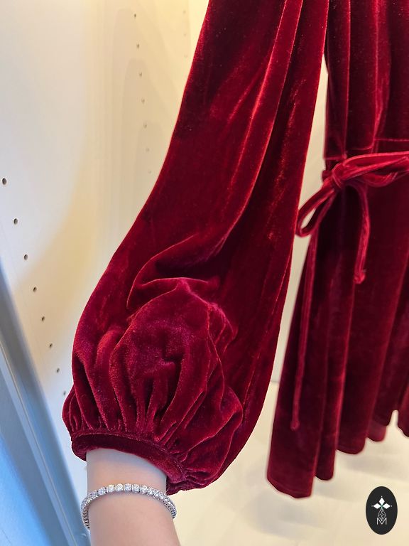 Бархатное, свободно ниспадающее платье для торжественных случаев, с рукавами 3/4. Бархатная ткань тяжелая. Красиво ниспадает на спине. Сшито на заказ у швеи. Ношу в повседневной жизни размер 36 или S. Было сшито для рождественского семейного мероприятия.