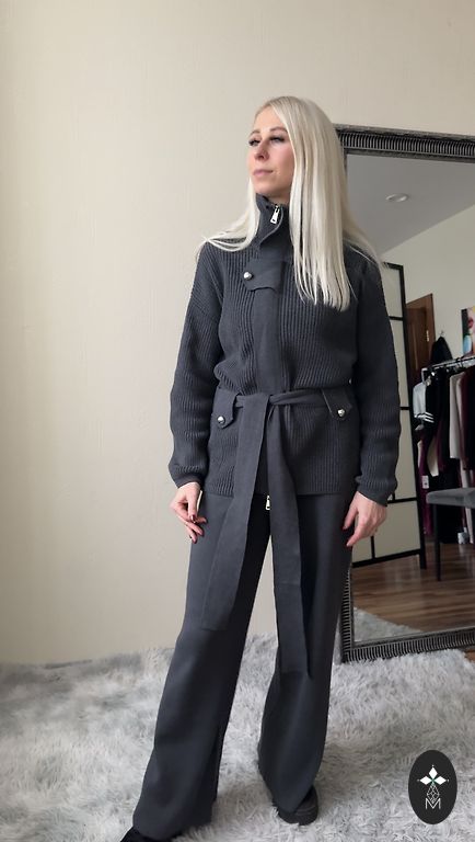 Jauns komplekts botdo tonī ar brīva piegriezuma džemperi un ērtām biksēm ar gumiju jostasvietā. Universāls modelis, kas piestāvēs un labi izskatīsies dažādos augumos. Audums mīksts un patīkams – piemērots gan ikdienas valkāšanai, gan brīvdienām.