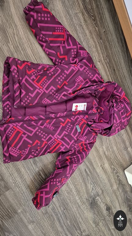 Coat with a thin, warm, soft lining. The fabric is very smooth and soft. Total length from shoulder to bottom: 55 cm.