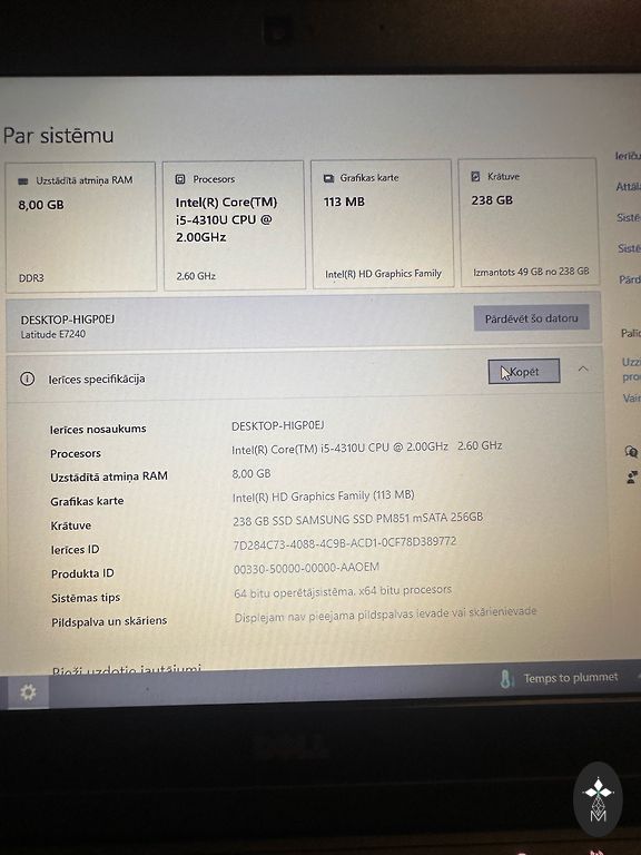 Procesorius: Intel i5-7200U 2,5 GHz
