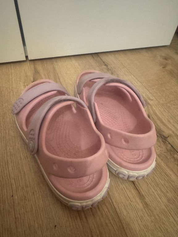 Crocs C9, worn indoors at the kindergarten. The straps were slightly damaged from washing, so new ones were sewn on, as seen in the photo. Might be useful for some little princess😊