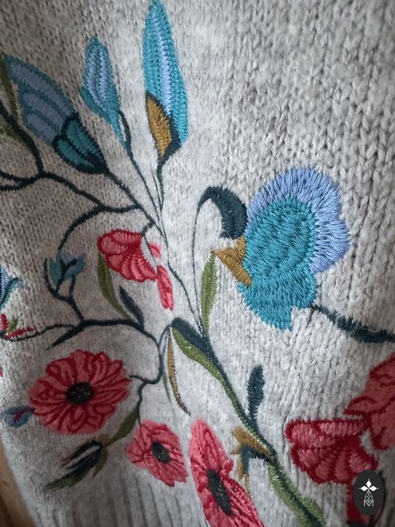 Skaists silts džemperītis ar spīdīgām kabatām