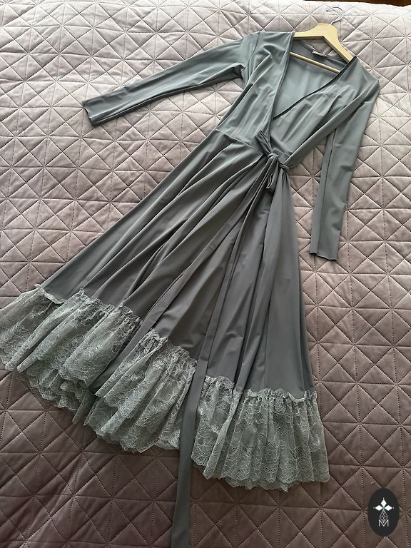 An elegant evening dress in a gentle silver shade with a lace bodice embroidered with beads and sequins. The light chiffon skirt flows smoothly, creating a refined and airy silhouette. Perfect choice for a wedding, celebration, or special evening.