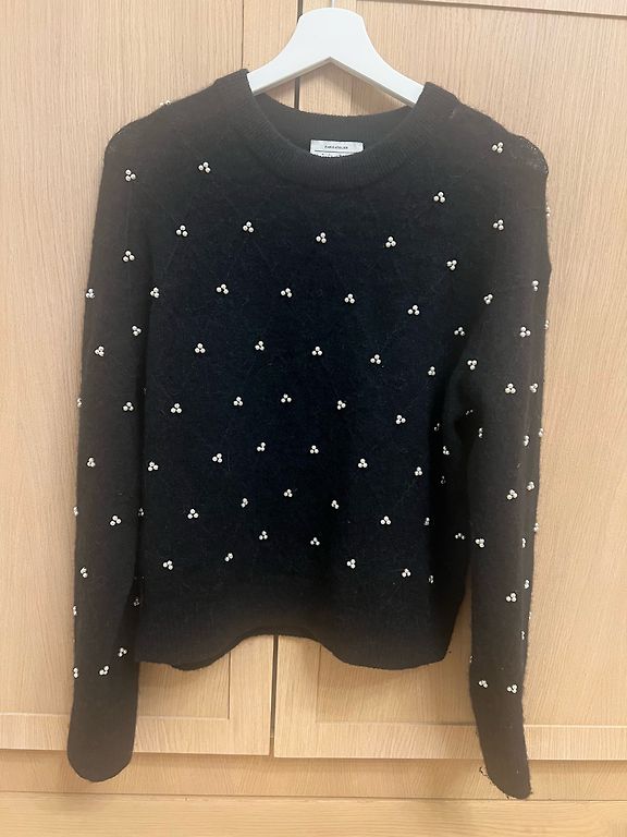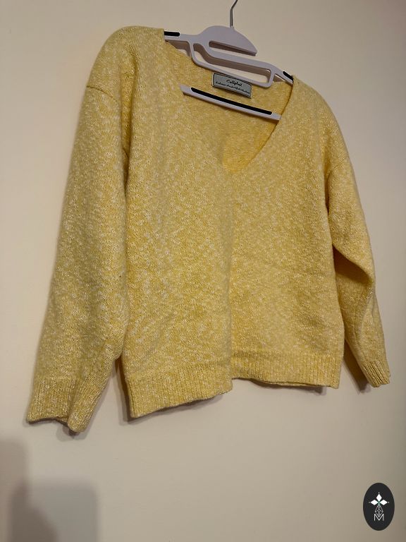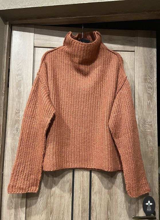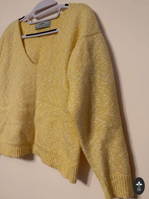 Megztinis iš Venecijos, itališko dizainerio Roberta Scarpa. Natūrali vilna, apdaila natūralia avių vilna. Atrodo nuostabiai! Šiltas ir labai gražiai priglunda prie figūros. Naujos prekės būklė. Pirktas Milane. Dydis M-L. Krūtinė 48 cm, ilgis 65 cm, rankovė 68 cm.