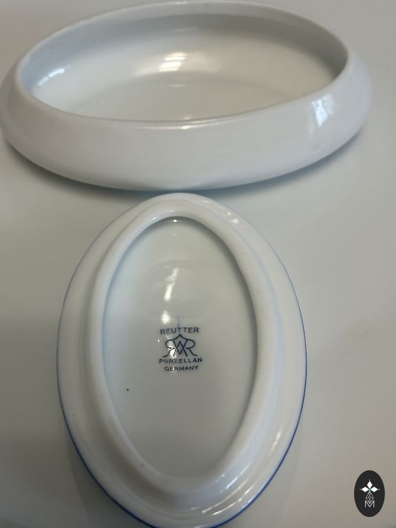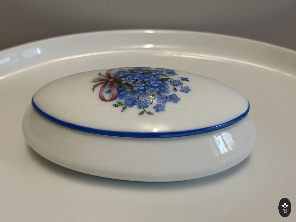 🌿 Porcelāna lādīte ar piparmētru krāsas ziediem